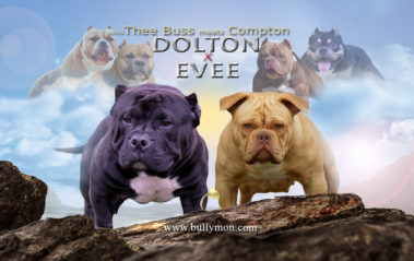 Evee ancestry also include Eminent Bullies Big Boss, F.A.B. PHENOM, Gottyline’s Dax, Exotic Bully Edge of Gottiline Bullseye, and TheBullyCampLine Mr. Miagi.