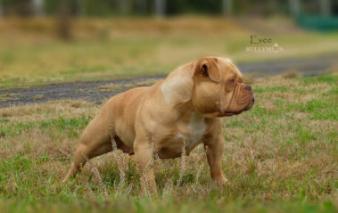 Dolton all the way from the United Kingdom (UK), large mass and head size with thick bone, strong rear, short back on a pocket size height and frame.