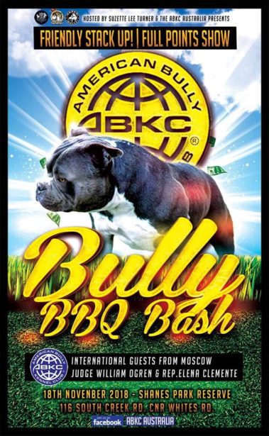 The ABKC Australia show is a annual event held 2 to 4 times a year where Breeders, American Bully owners, Bully Breed Industries, Breed Interest and other alike come together to support the love and passion for American Bullies in Australia and Internationally!