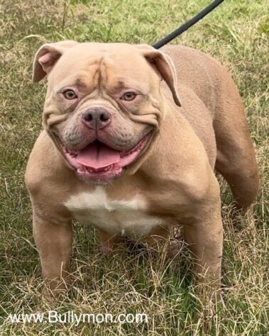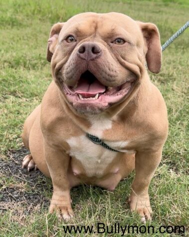 His parents are Bullymon Astro and Bullymon CupCake, she is daughter of Mini Beast, both Mini Beast and Astro inherited rare breed type features only seen and available in oversea American Bully studs.