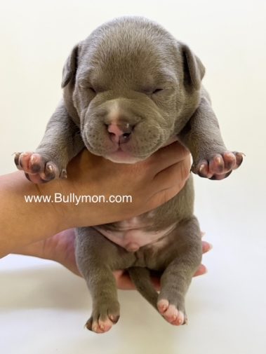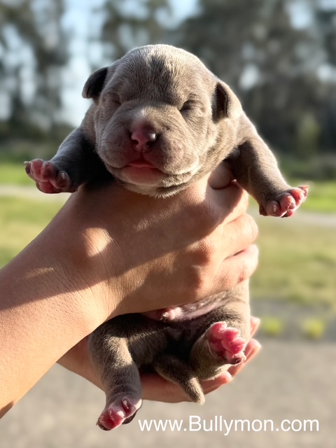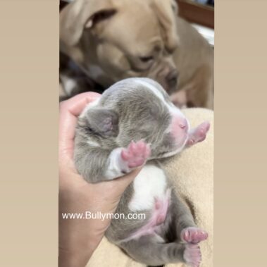 Available to a loving home Bullymon Astro to Bullymon CupCake lilac puppy boy.