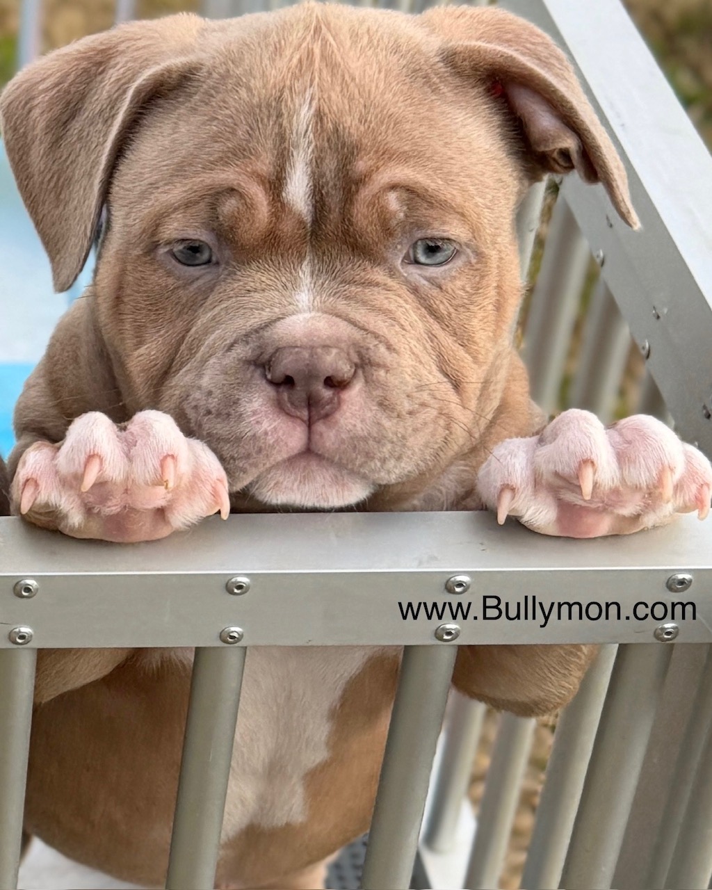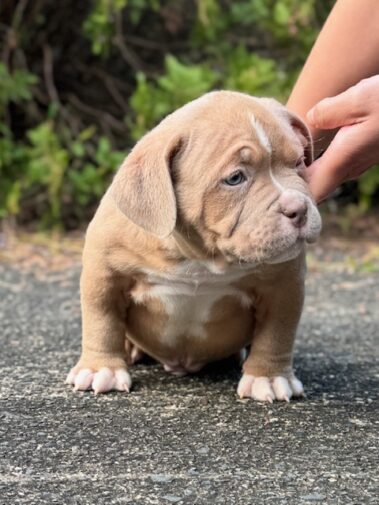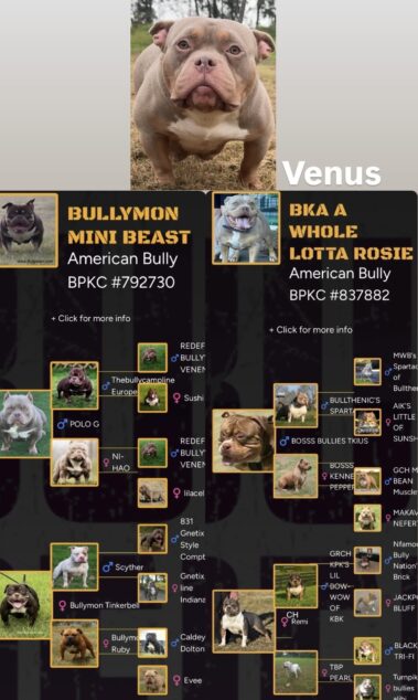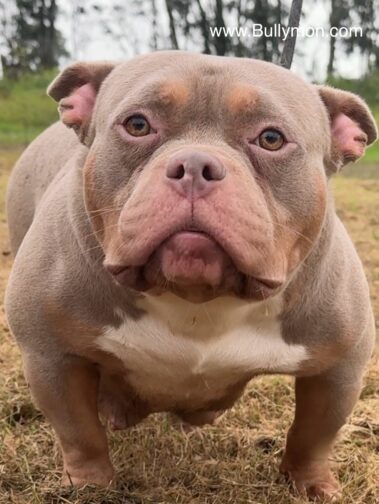 His parents are Bullymon Astro and Explosive Bullymon Venus, she is daughter of Mini Beast, both Mini Beast and Astro inherited rare breed type features only seen and available in oversea American Bully studs.