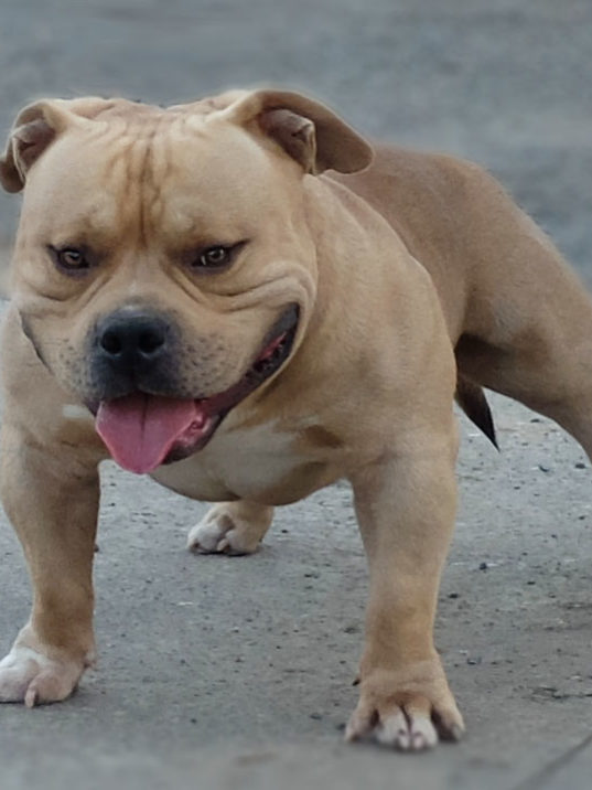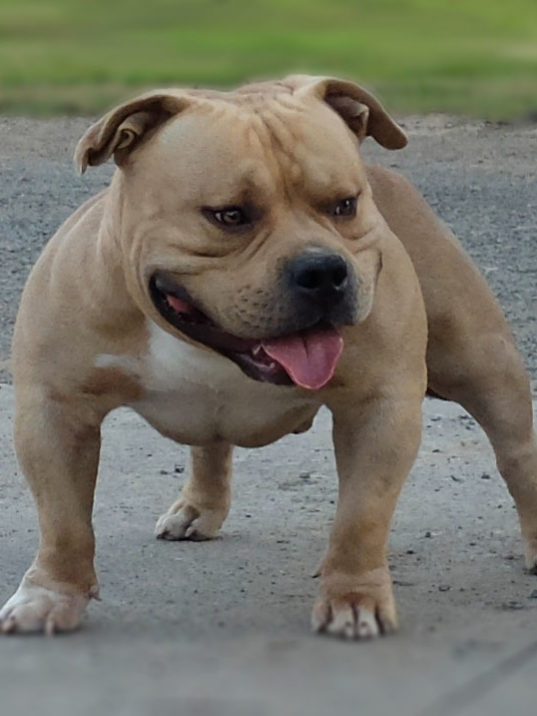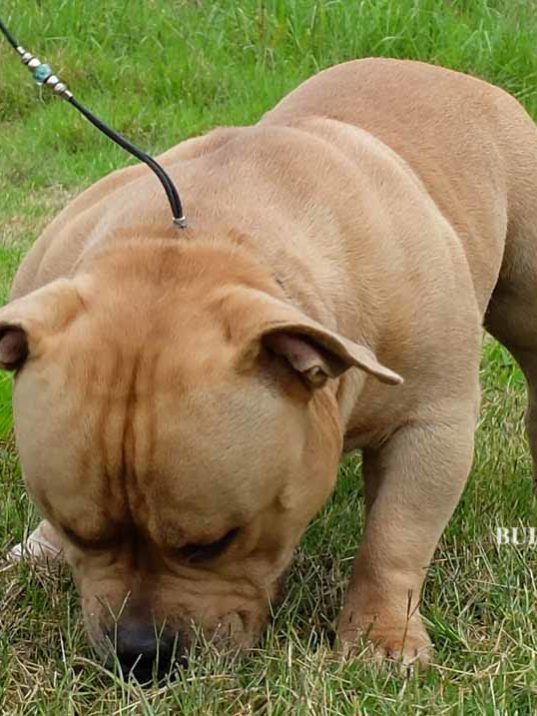 His characteristic consists of Extreme Bully features and he has posses most of those characteristics such oversized head, pronounce cheekbone, chiselled face, broad shoulder, defined mass & exaggerated features. He is also passing those features to his offspring.